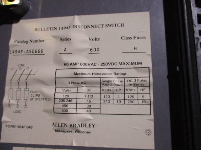 Allen Bradley via TCS 1494FASC666 Ser. A NSNP 1494F ASC666
