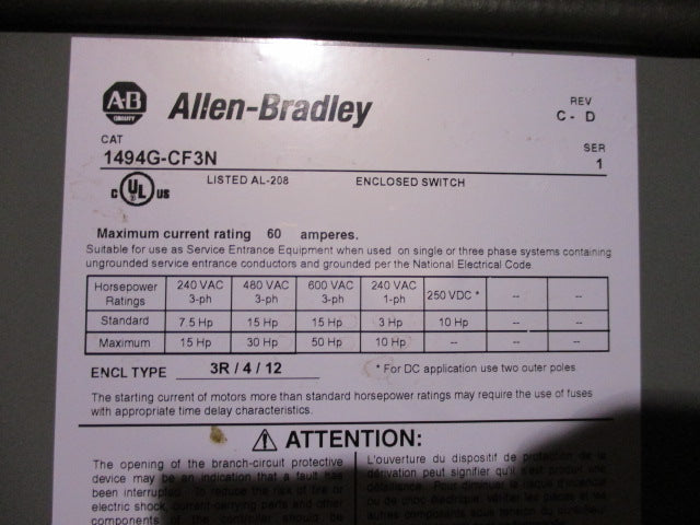 Allen Bradley via TCS 1494GCF3N Ser. 1 NSNP 1494G CF3N