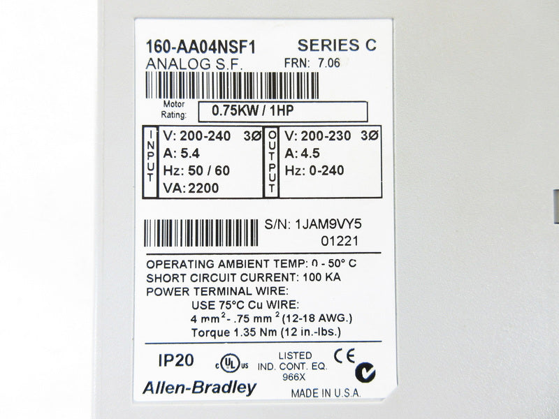 Allen Bradley via TCS 160AA04NSF1 Ser. C NSFP (BR/WH) 160 AA04NSF1
